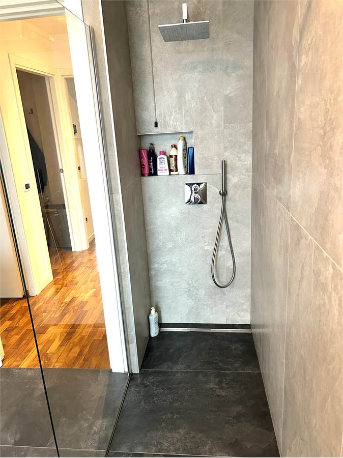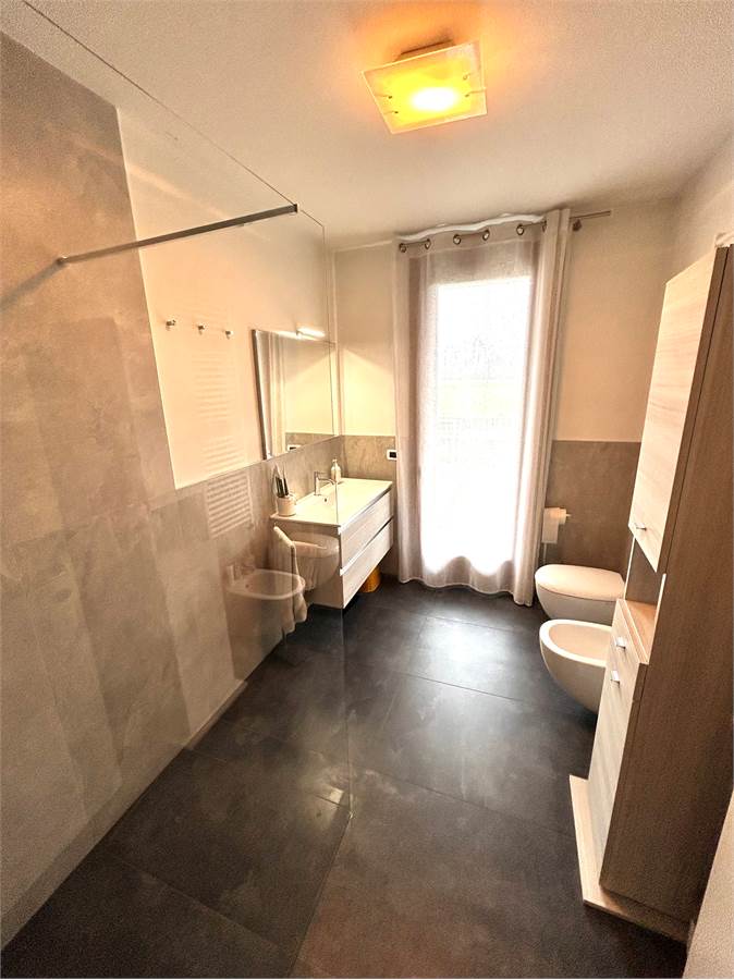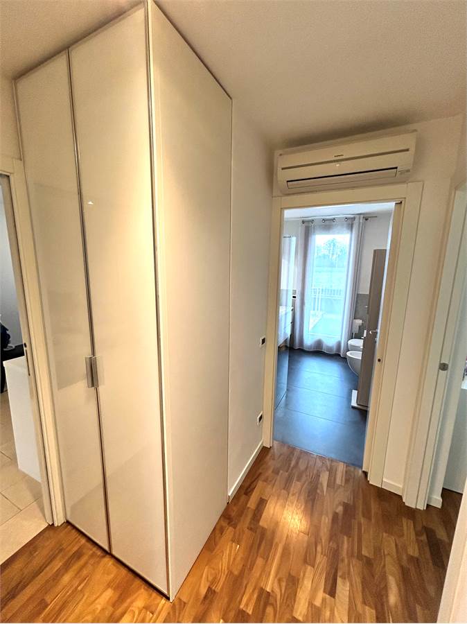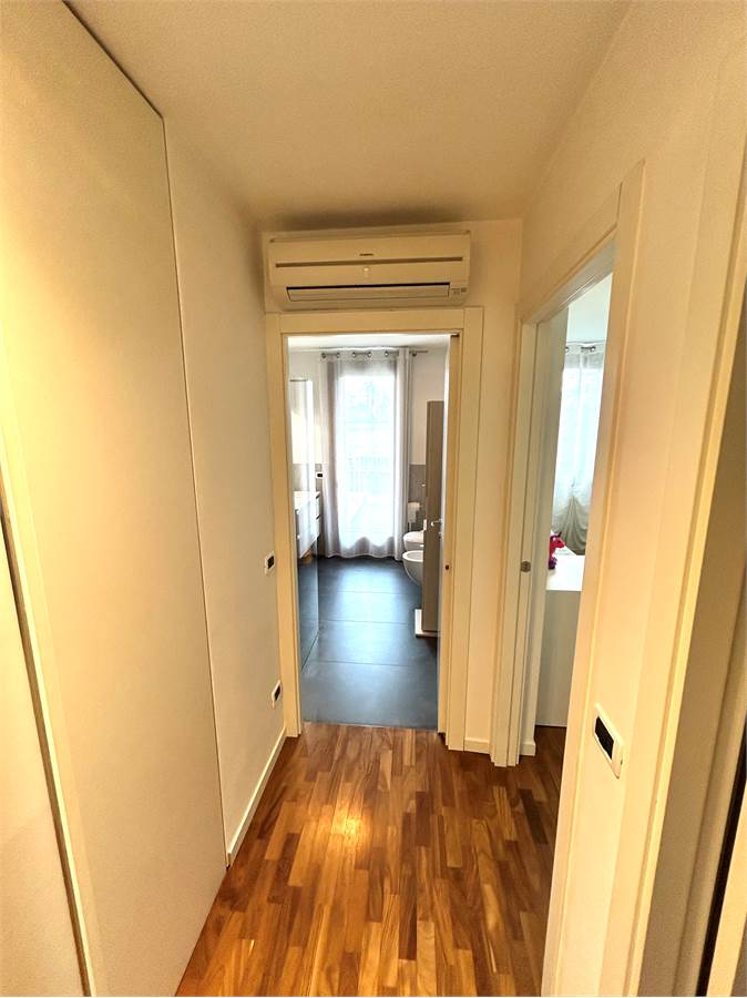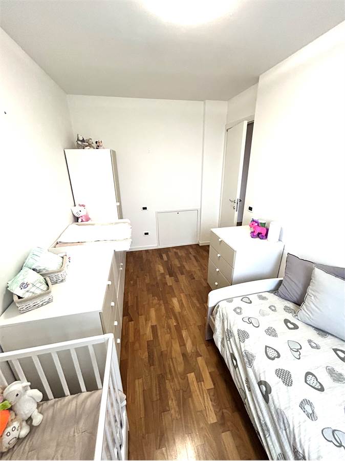 La zona notte è composta da una camera matrimoniale di generosa metratura con armadio a muro a sei ante, una camera singola, un bagno con doccia e un altro bagno (attualmente utilizzato come ripostiglio) oltre ad un disbrigo arredato con armadiatura su misura.
