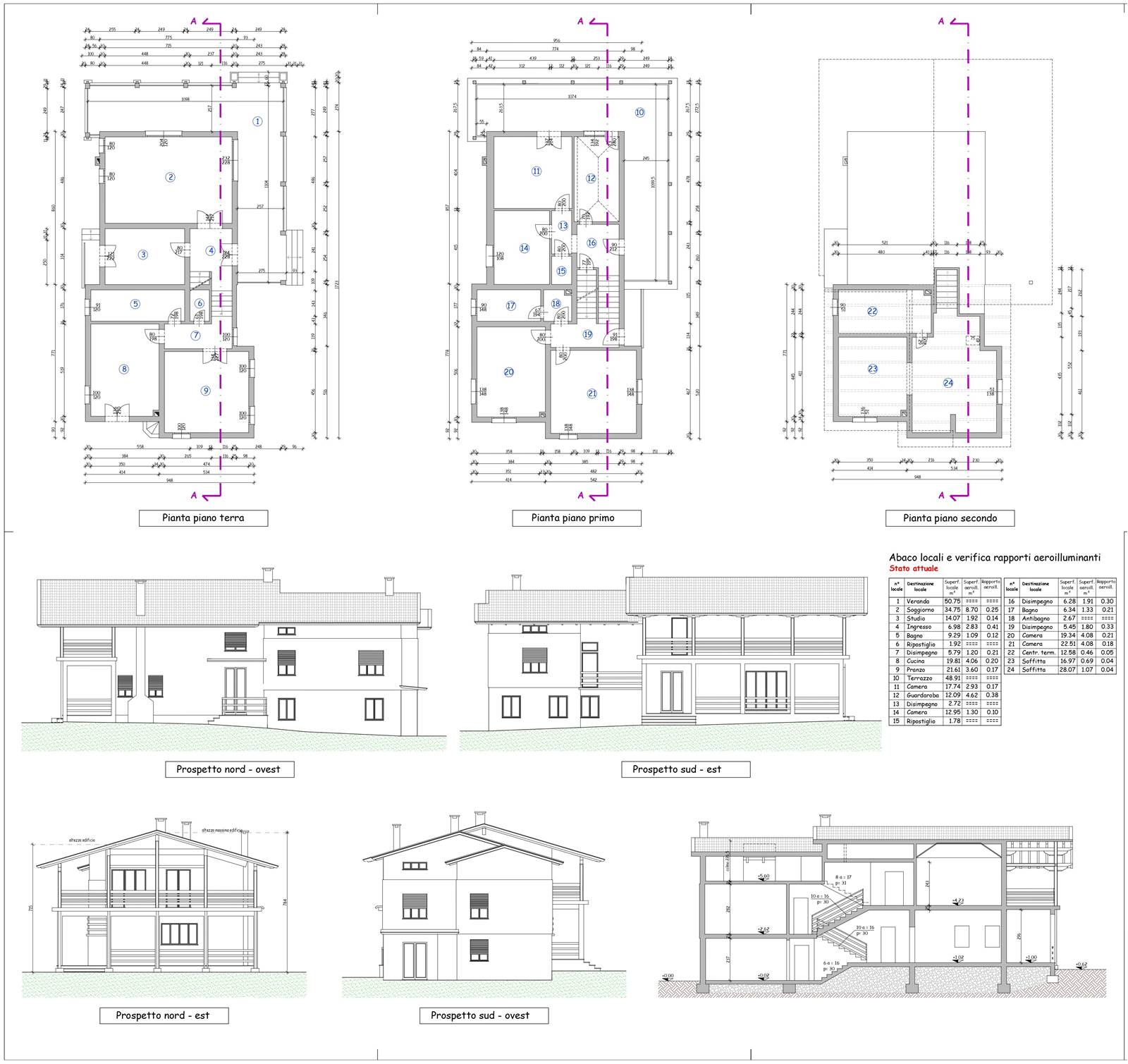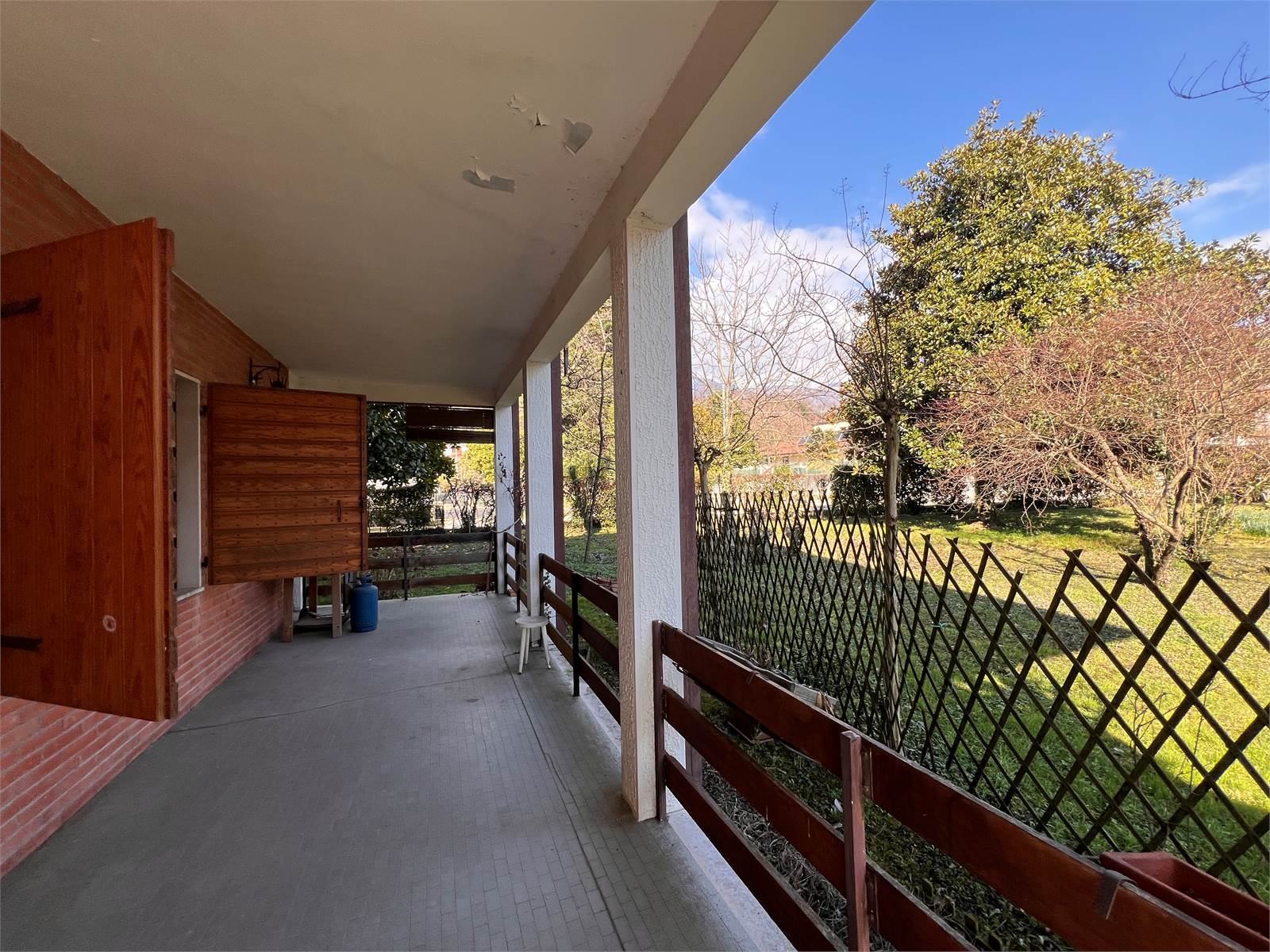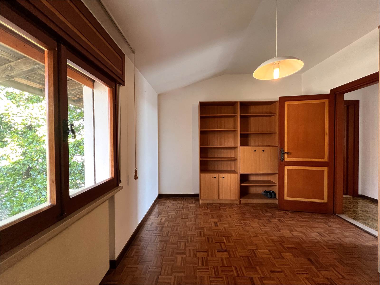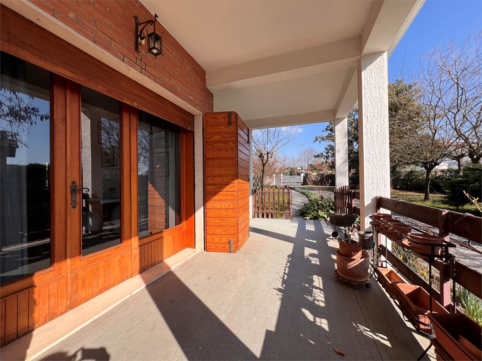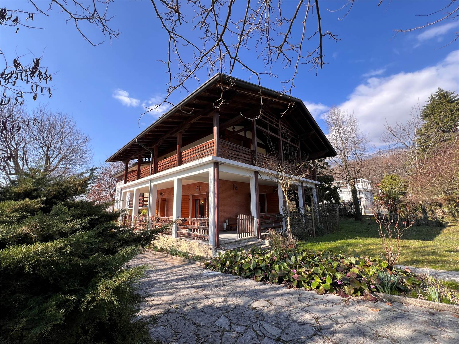 Questa originale dimora si contraddistingue subito per la sua architettura che ricorda il tipico chalet di montagna. Il cancello automatico apre le porte a questa curata proprietà e attraverso il romantico viale in fiore si raggiunge il portico d'ingresso. La casa, di circa 280 mq, si sviluppa su cinque piani sfalsati. Ai piani inferiori troviamo il grande salone impreziosito dal caminetto e dalle vetrate che affacciano sul portico, lo studio, un bagno, un ripostiglio, la cucina abitabile e la sala pranzo con accesso al porticato esterno ideale per pranzi e cene in compagnia. Ai piani superiori, invece, troviamo le quattro camere da letto, il guardaroba, il bagno, il ripostiglio e infine l'ampia soffitta con la centrale termica. Originaria degli anni '60, è stata da poco oggetto di riammodernamento. I principali lavori effettuati sono: