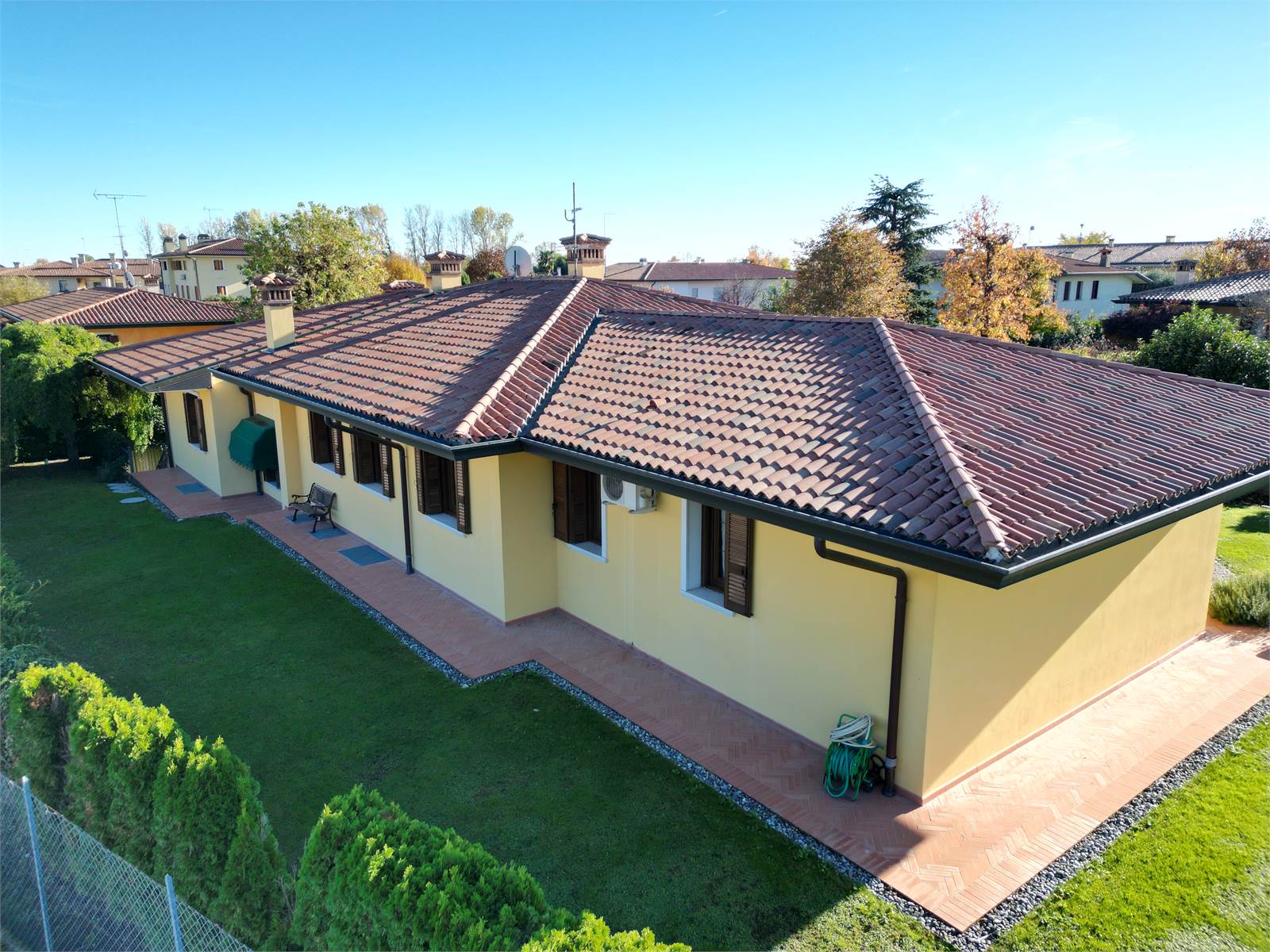 In tranquilla zona residenziale di Cordignano frazione, proponiamo in vendita una splendida villa singola che unisce grandi spazi, comfort abitativo su un unico livello e finiture di pregio.