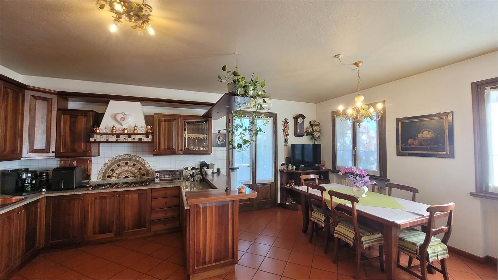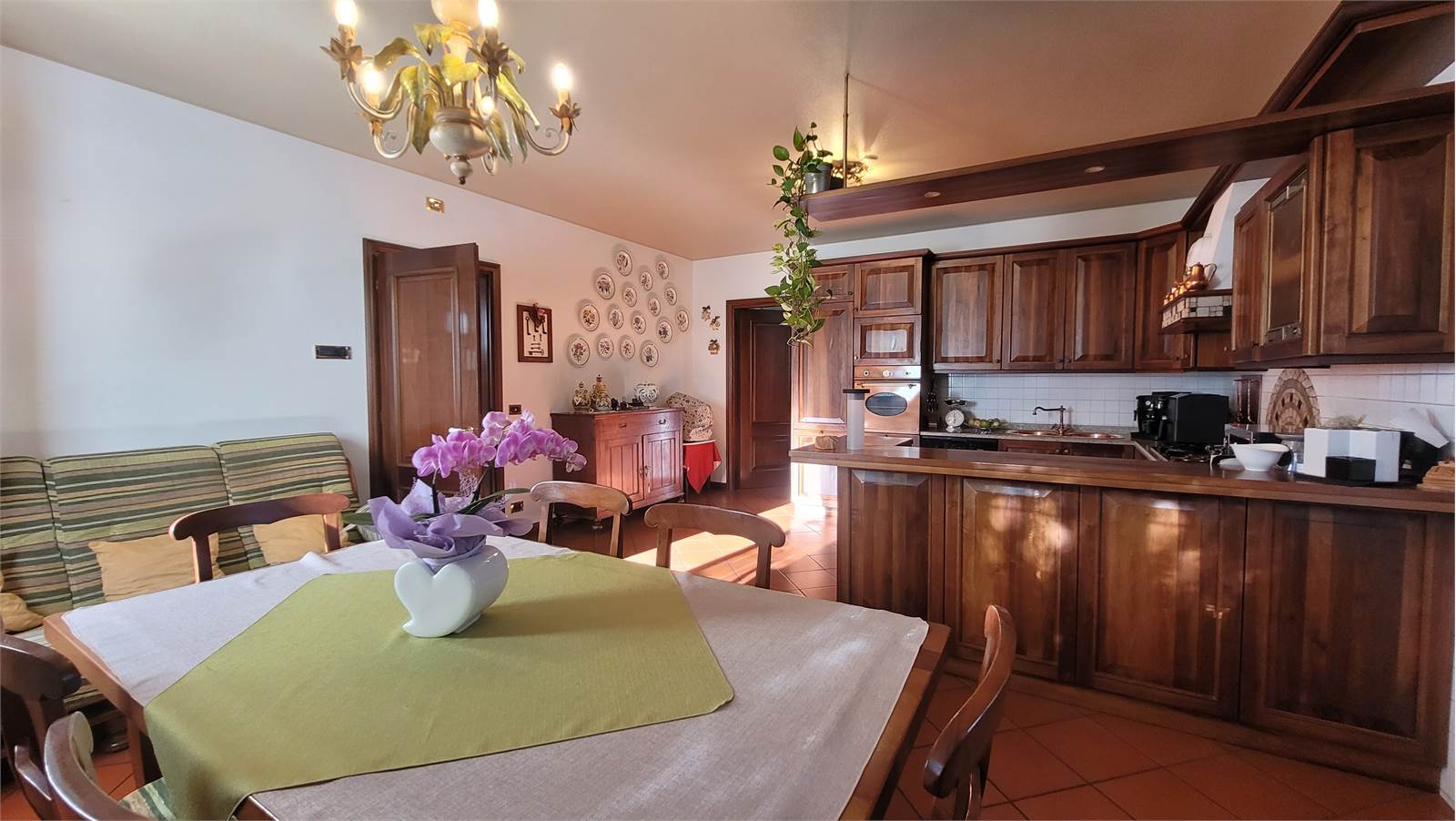 La cucina abitabile, con terrazzo dedicato, dispone di un’ampia dispensa attrezzata come seconda cucina, pensata per gestire al meglio gli spazi quando si ricevono ospiti.