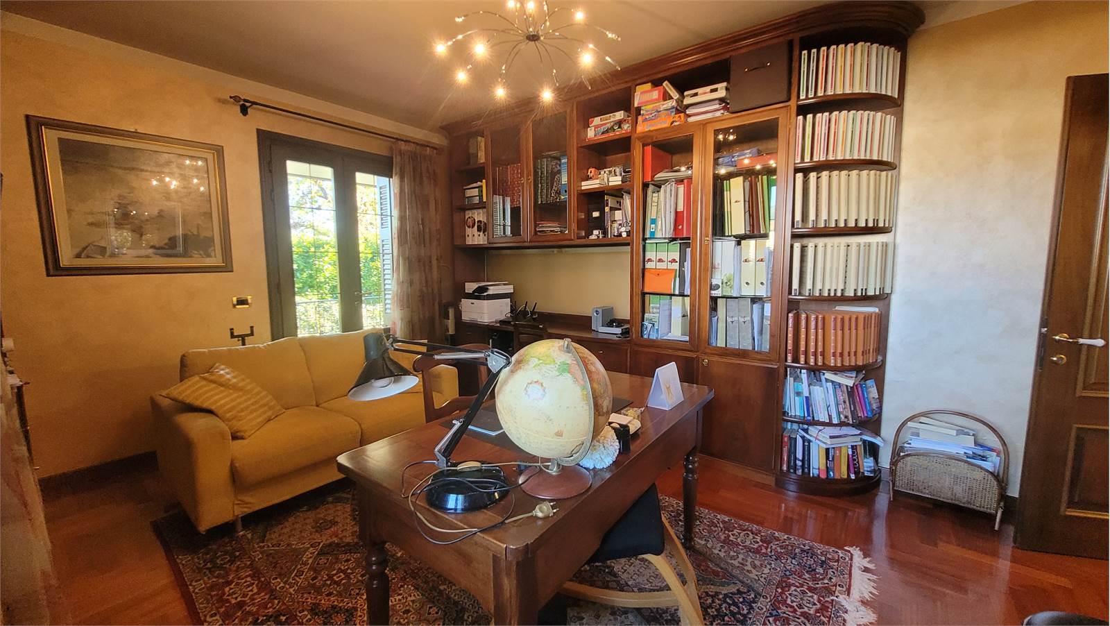 Completano il piano una camera doppia adibita a studio, una camera singola, una camera doppia, una sala da bagno e una camera padronale con bagno riservato finestrato.