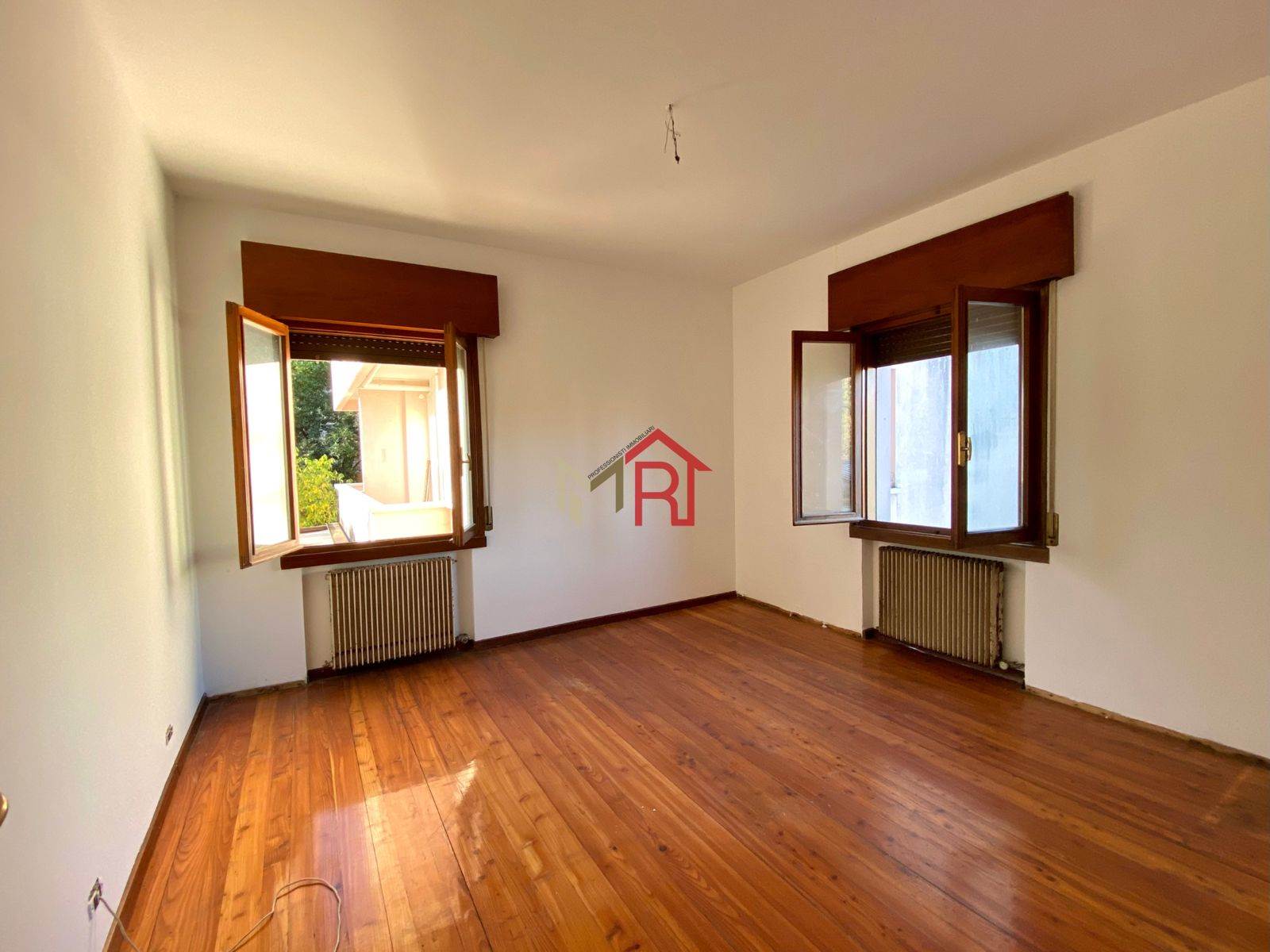 Al primo piano troviamo un altro appartamento con attualmente due camere, un bagno, soggiorno con sala da pranzo e cucina separata. La metratura consente tranquillamente di ricavare la terza camera e un secondo bagno.